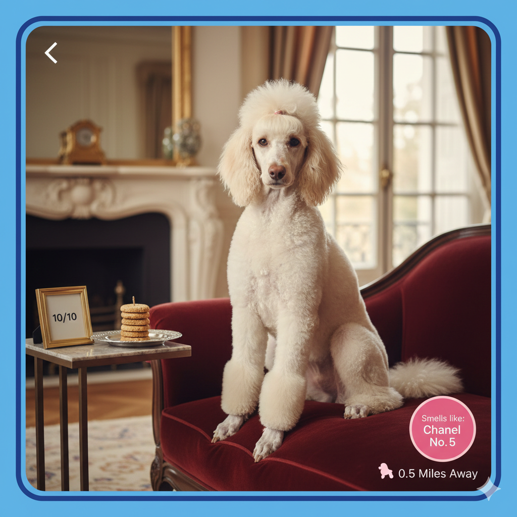 "Artisanal treats only. My groomer is my best friend. Looking for a refined lap to rest my head on."